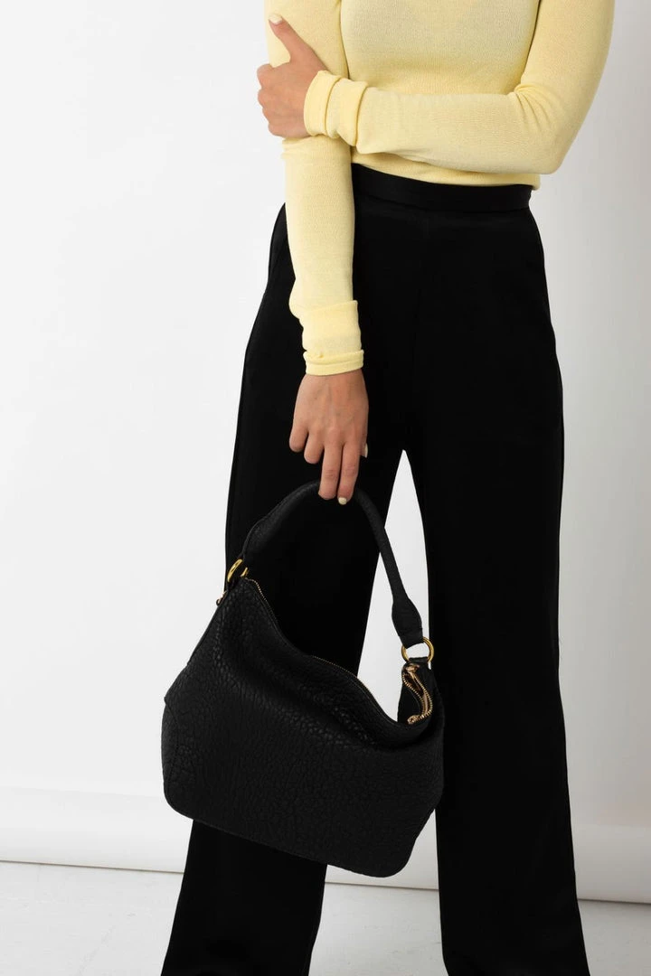 Slouchy and relaxed the Dani shoulder bag is the carefree Hobo shape. This minimalist design expresses effortless style. With the subtle yet distinct texture of bubble leather our Dani bag is sophisticated and timeless.