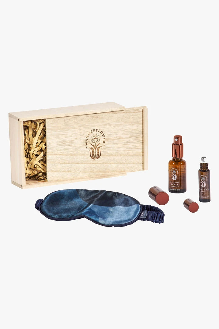 Unwind, breathe deep and drift off with this Lavender and Fig Sleep-Nurturing Set. Containing lavender Pillow Spray (30ml), fig-scented roller-ball Sleep Well Oil (10ml) and a 100% polyester Eye Mask with a silky finish, the set will create a sleep-nurturing atmosphere anytime, anywhere.